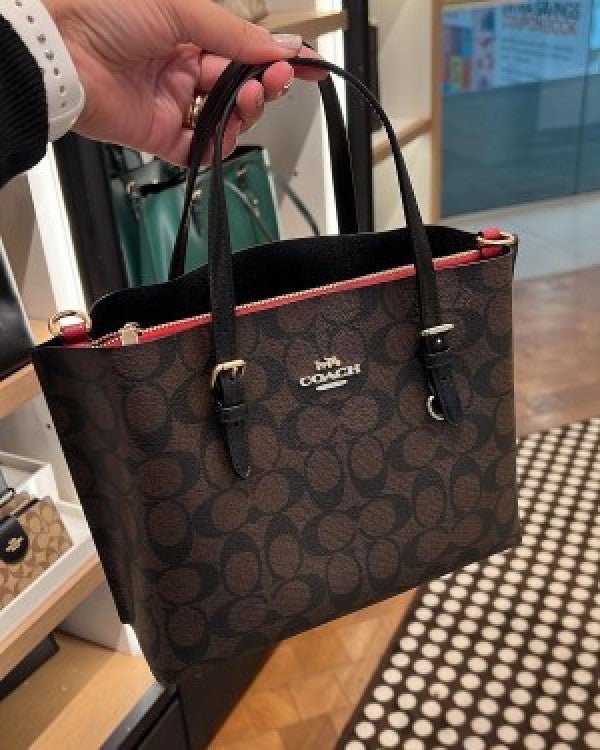 The Coach Mollie Tote 25 in Signature Canvas is a stylish and versatile handbag designed for everyday use. Made from Coach's signature canvas material, it features the iconic C" logo pattern, giving it a classic, sophisticated look. This tote is sized perfectly for those who want a compact yet functional bag, offering ample space for essentials like your wallet, phone, and makeup. The bag has comfortable top handles and an adjustable crossbody strap for hands-free wear, making it ideal for casual outings or work. The inclusion of the original box ensures authenticity and adds value for collectors.