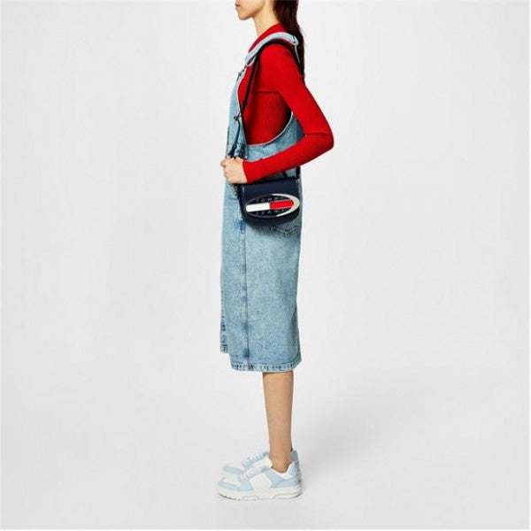 Signature Tommy Jeans Logo : The bag often features the iconic Tommy Jeans logo or branding, which could include the signature red, white, and blue colors or the brand's "Tommy Jeans" text, making it instantly recognizable.