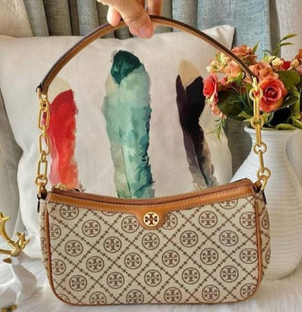 The bag comes in its original box, making it an excellent choice for gifting or for those who appreciate luxury packaging. Overall, the Tory Burch T Monogram Jacquard Shoulder Bag combines style, functionality, and quality, making it a perfect addition to any fashion-conscious individual's collection.